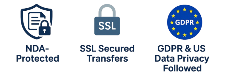 No. We never share, resell, or reuse any content you send us. We offer NDA signing, use secure cloud tools (Dropbox, Drive), and follow international data protection standards (GDPR, CCPA, etc.)
