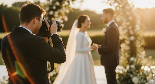 Natural light is your best friend when it comes to wedding photography. The golden hour—just after sunrise or before sunset creates soft, warm tones that make couples glow naturally. During ceremonies, position yourself to use window light or ambient venue lighting to your advantage. Always scout the venue beforehand to identify the best lighting spots for portraits and group shots.